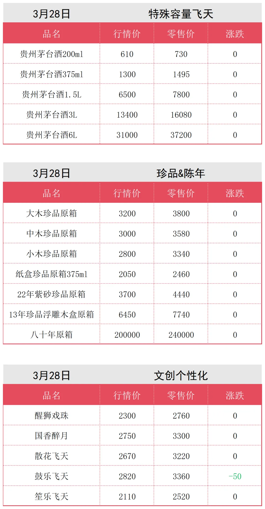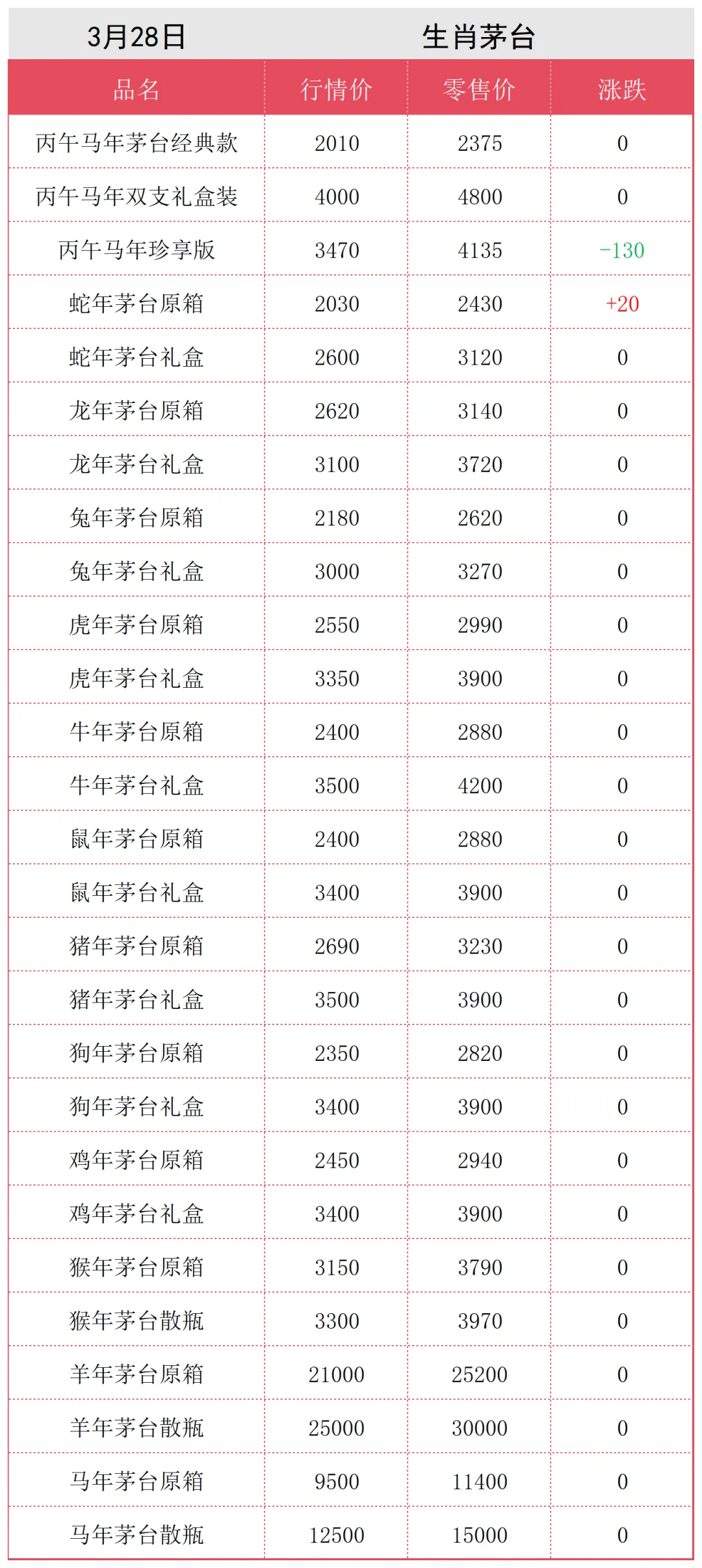 3月28日 马茅经典版上涨 回收行情稳定 白酒回收行情参考价