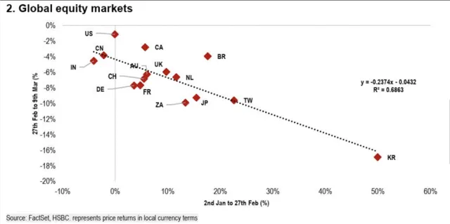 越来越多的市场迹象表明,和伊朗冲突相关的那一轮极端恐惧,可能已经被定得差不多了。换句话说,风险资产未必还有那么大的继续单边下杀空间。最近这轮跨资产走势很典型。无论是布伦特还是G10短端利率,最剧烈的risk-off调整大概率已经过去。从仓位和价格反应看,市场当时的状态已经相当接近典型危机时刻,甚至一度有点像疫情初期那种“先不问价,先降风险”的味道。股票、利率、商品一起迅速重估更高的地缘风险溢价,节奏又快又陡。这通常说明市场已经在交易最坏情景,而不只是提高警惕。旦大部分防御性再配置都做完了,后面想继续靠同一方向把行情推得很远,反而没那么容易。最近跌得最狠的,恰恰多是今年涨得最顺的那些市场,这更像是拥挤仓位被集中削减,而不是新一轮趋势刚开始。
