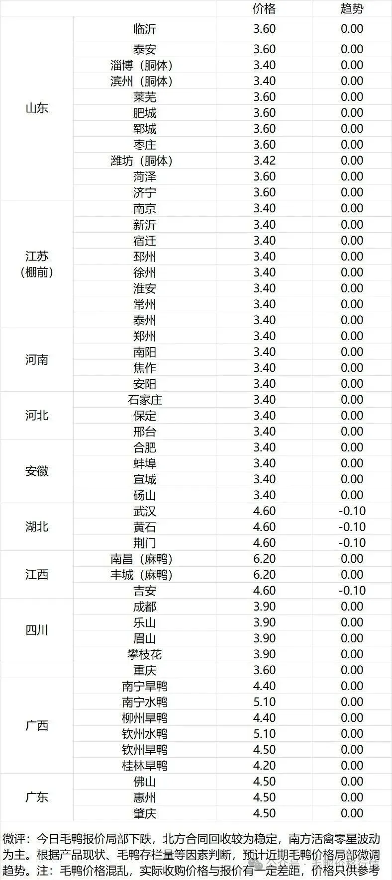 【广东白鸭价格走势】