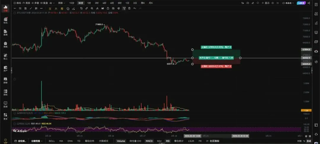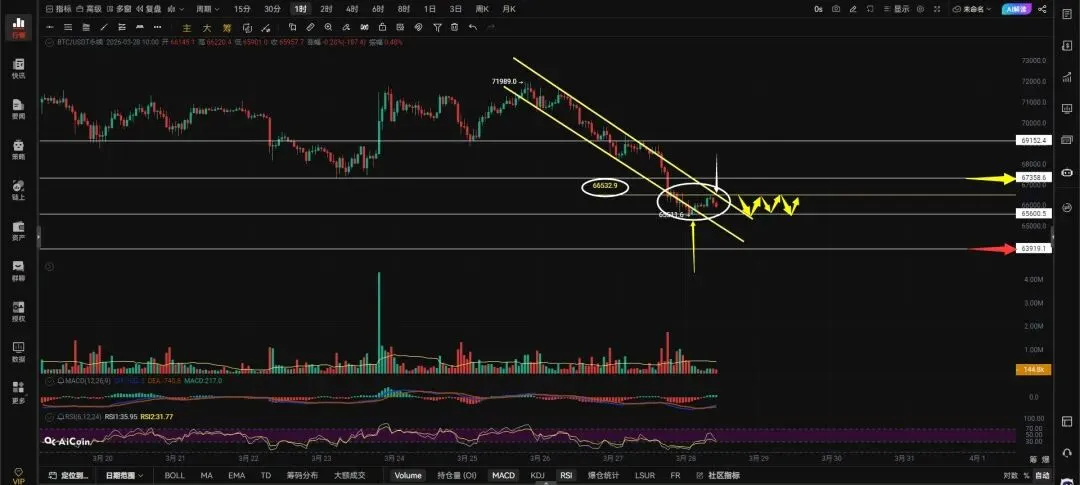 3.28日午间行情观点。$BTC 观点:
