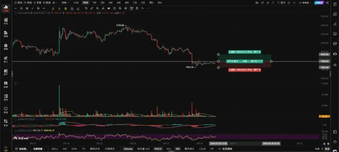 左侧插针订单:1908多,跌破1862止损。