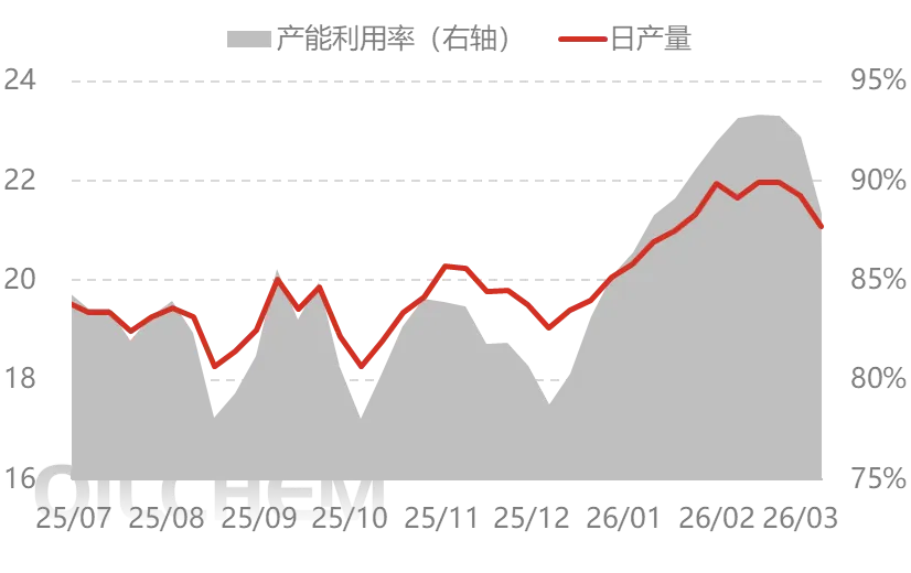 2026年第13周(20260320-0326),中国三聚氰胺周均产能利用65.98%,较上周期增加6.67个百分点。本周期内地区产能利用率山东、河北、安徽地区下降,河南、山西、四川、湖北、新疆、陕西地区提升,其余地区暂无变化。