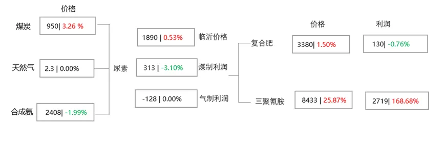 三聚氰胺方面,因尿素价格有政策管控、波幅较小,但三聚氰胺价格大幅走高,行业利润上涨明显。
