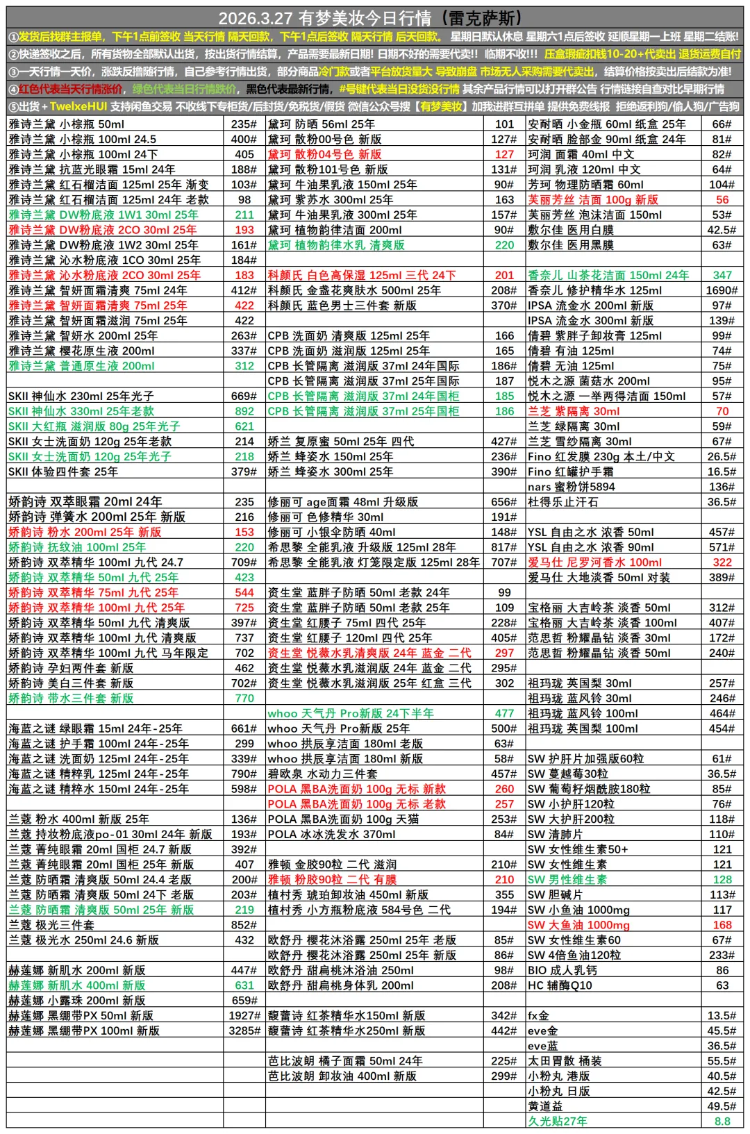 2026.3.27有梦(美妆)收货行情更新