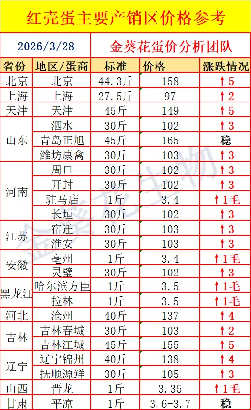 今天北京主流再涨5块,北方红蛋产区继续大面积跟涨,南方粉蛋两湖多数稳定了!今天河粉也是看稳定,预计明天北京主流企稳,产区整体也是稳定为主,部分地区再补涨一天!