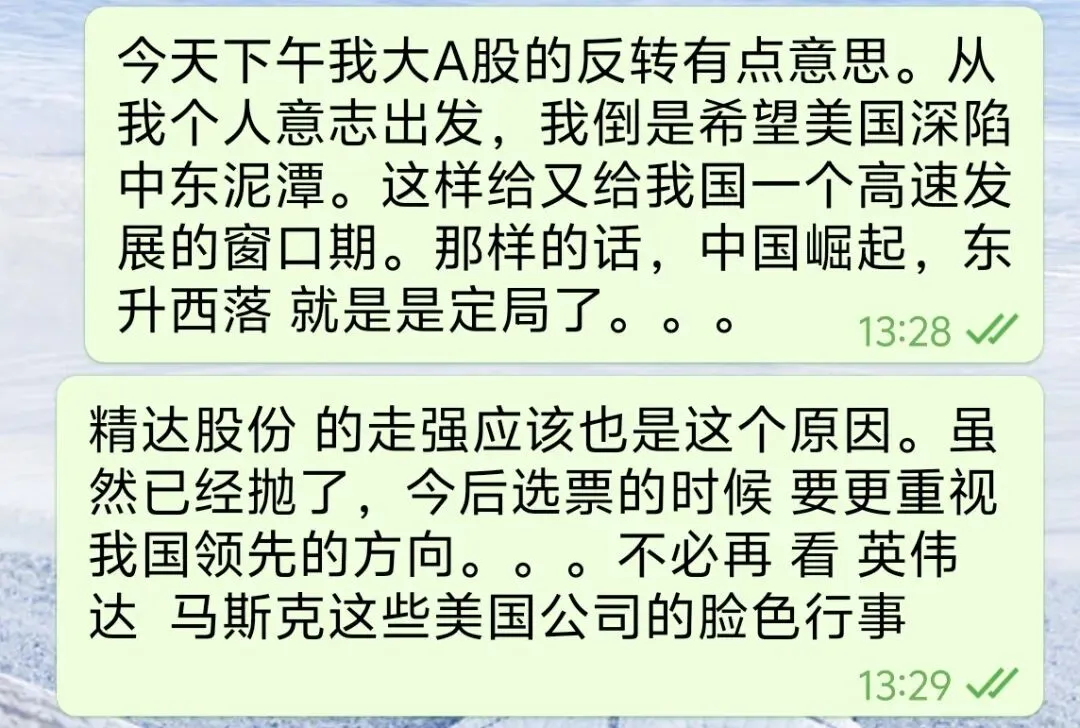 每天复盘先指定初步操作计划,次日竞价时段看市场情绪走向做调整,盘中再看实际资金走向做再次调整。并不是说定了计划就不能改变。在变通这方面,分享一个小事,邻居家的小孩才上3年级,他会趁大人看起来心情好时开口索要玩具或零食。你要是不懂变通岂不是连小学3年级的水平都不够?