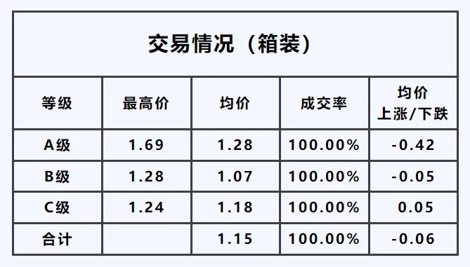 A1级——最高价1.70元/枝,均价较昨日,下跌0.42元/枝;