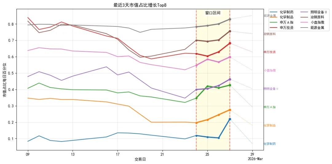 化学制药、化学制品、申万A指、申万投资、照明设备Ⅱ、冶钢原料、小盘指数、能源金属