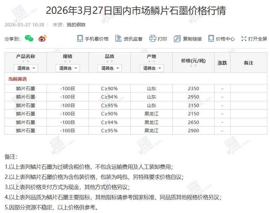 >鳞片石墨价格行情