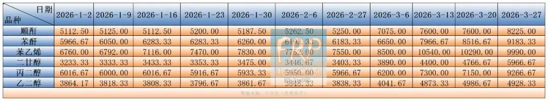 本周五UPR主要原材料基准价同比上周,继续强势。丙二醇+29.60%,二甘醇+25.17%;反而苯乙烯-2.92%。
