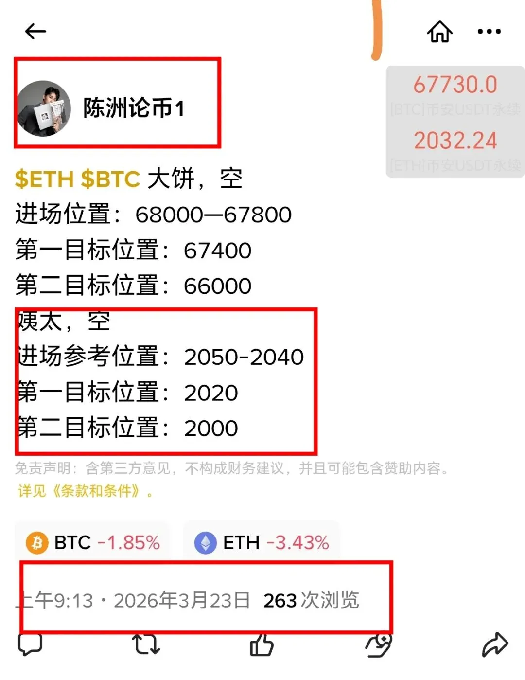 3.28凌晨比特币以太坊行情分析及日内复盘总结