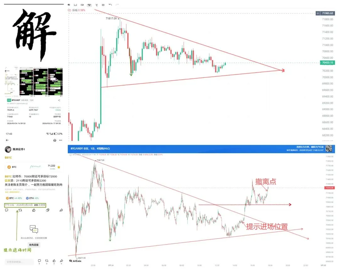 早间就给大伙划重点:回踩70000–70500区间不破,直接轻仓试多,目标看71800–72000。