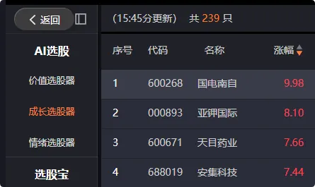 使用AI选股功能:例如,打开软件的“AI选股”,使用“成长选股”等模型,让工具帮你初步筛选出符合条件的股票。