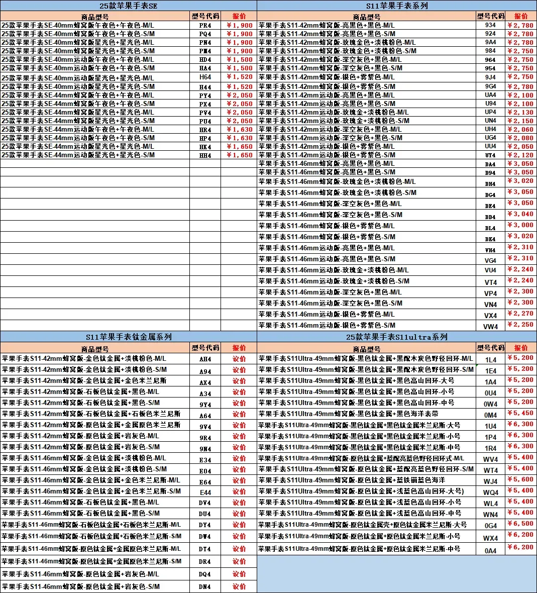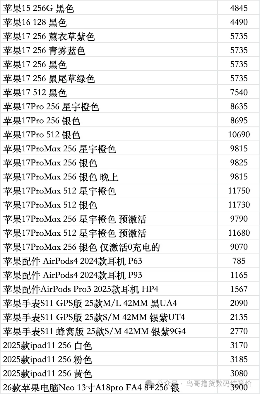 | 鸟哥收货iphone/ipad/手表系列结算价(前一天的结算价) |