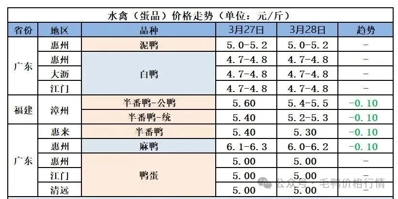 2026年3月29日全国鲜鸭蛋价格