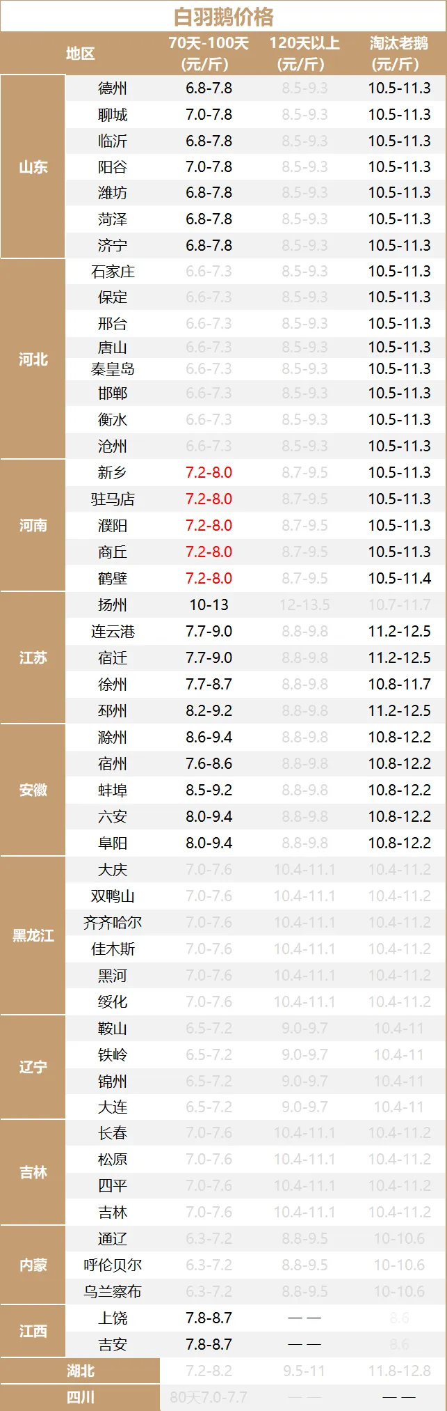 未来几日南方鹅价将以震荡下行为主,短期内反弹上涨可能性小。供应端压力短期内难以缓解,消费淡季影响持续,市场需求难有明显好转。目前北方仔鹅稳中有涨。蛋价上涨老鹅有上涨趋势。