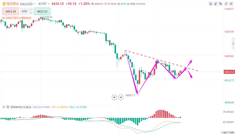 下方回落至4415-4425区域现企稳信号后北上多,防守4400,目标看 4450–4480-4520。