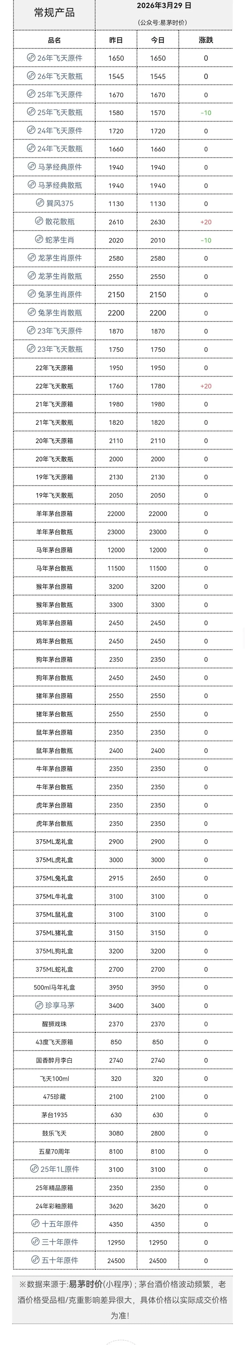 >3月29日|飞天行情