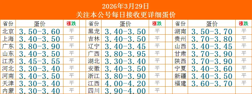 下图为3月29日全国鸡蛋价格表