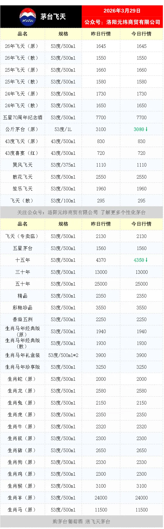 特别声明:行情价格为酒商调货价,仅供交流探讨,全国各地酒商调货价有几十块的差异属正常现象!