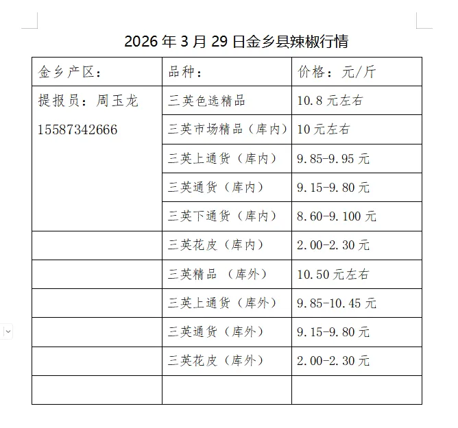 2026年3月29日金乡县辣椒行情
