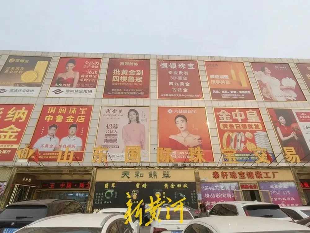 在济南窑头路西段,坐落着山东珠宝国际交易中心二期、银座珠宝交易中心,山东国际珠宝交易中心一期与之相隔仅1000米。这里曾是江北最大黄金珠宝产业集聚区,进入山东市场的珠宝品牌总部有八成落户于此,集聚了黄金、银饰、翡翠、和田玉、水晶、珍珠等全品类珠宝业态。梦金园、百泰、周大生、萃华金店、中国黄金等一众国内一线品牌扎堆入驻,也让这里成为市民选购婚嫁金饰、投资金条的首选之地。鼎盛时期,三大珠宝城金店林立、柜台相连,一眼望去满目金辉。