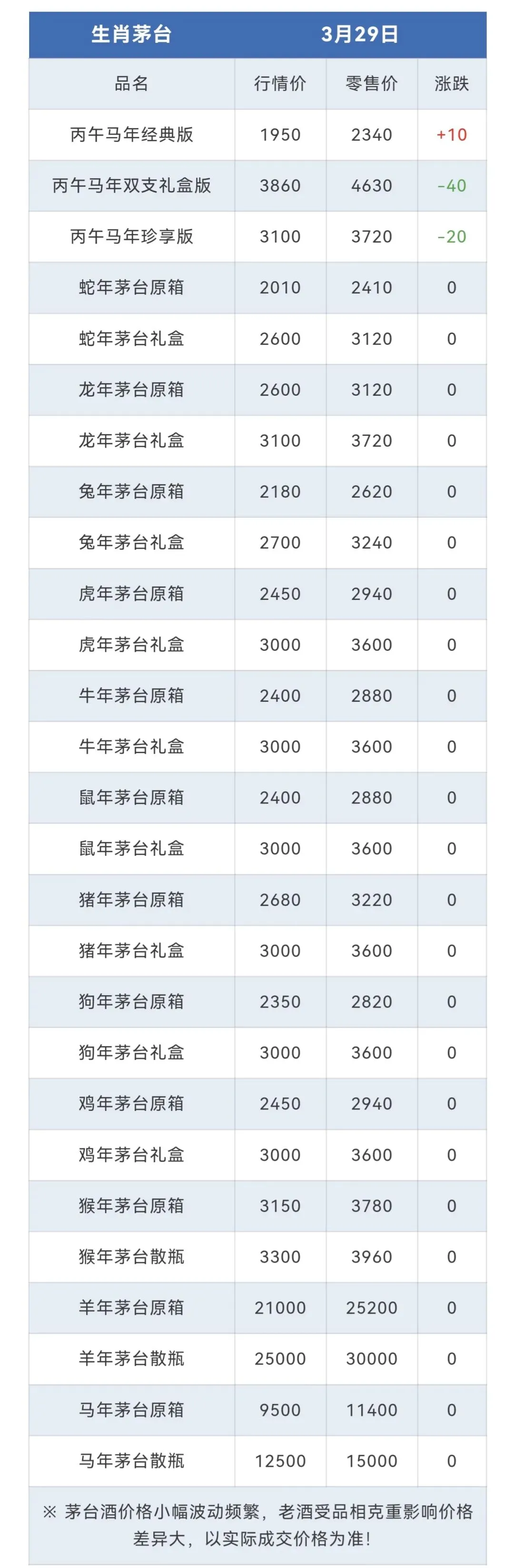 ※行情价:酒商调货价,不考虑物流运输人工成本,每个地区调货价有几十块浮动属正常现象。