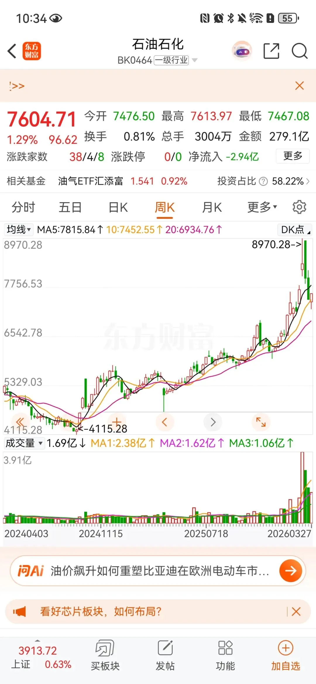 好消息是,上周已经企稳了。而且回踩关键十周线。。。确认支撑有效。。。这个时候介入性价比就非常高,这就是我说的后面有的是机会不着急的,当然如果你做中长线投资一直拿着也行。。。。可以等到冲突结束止盈。。。。。