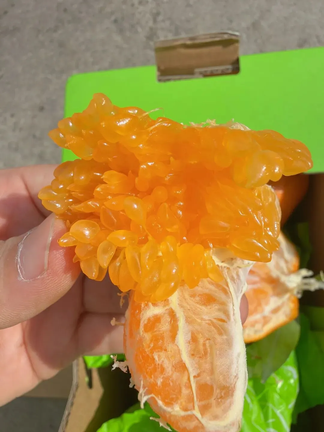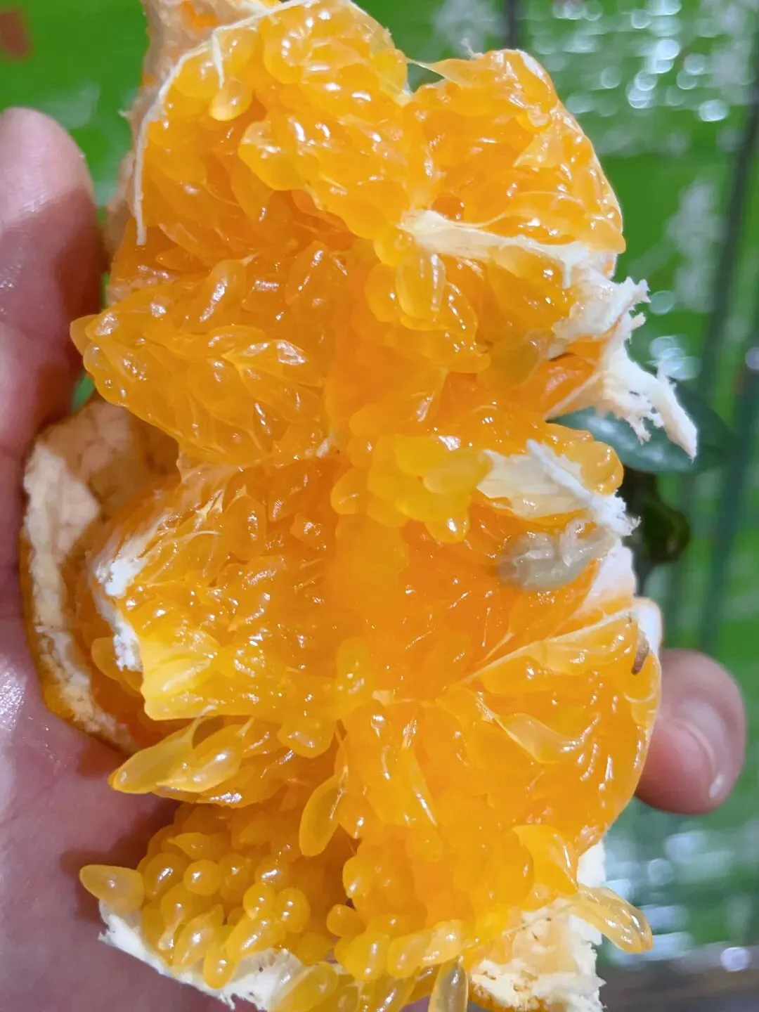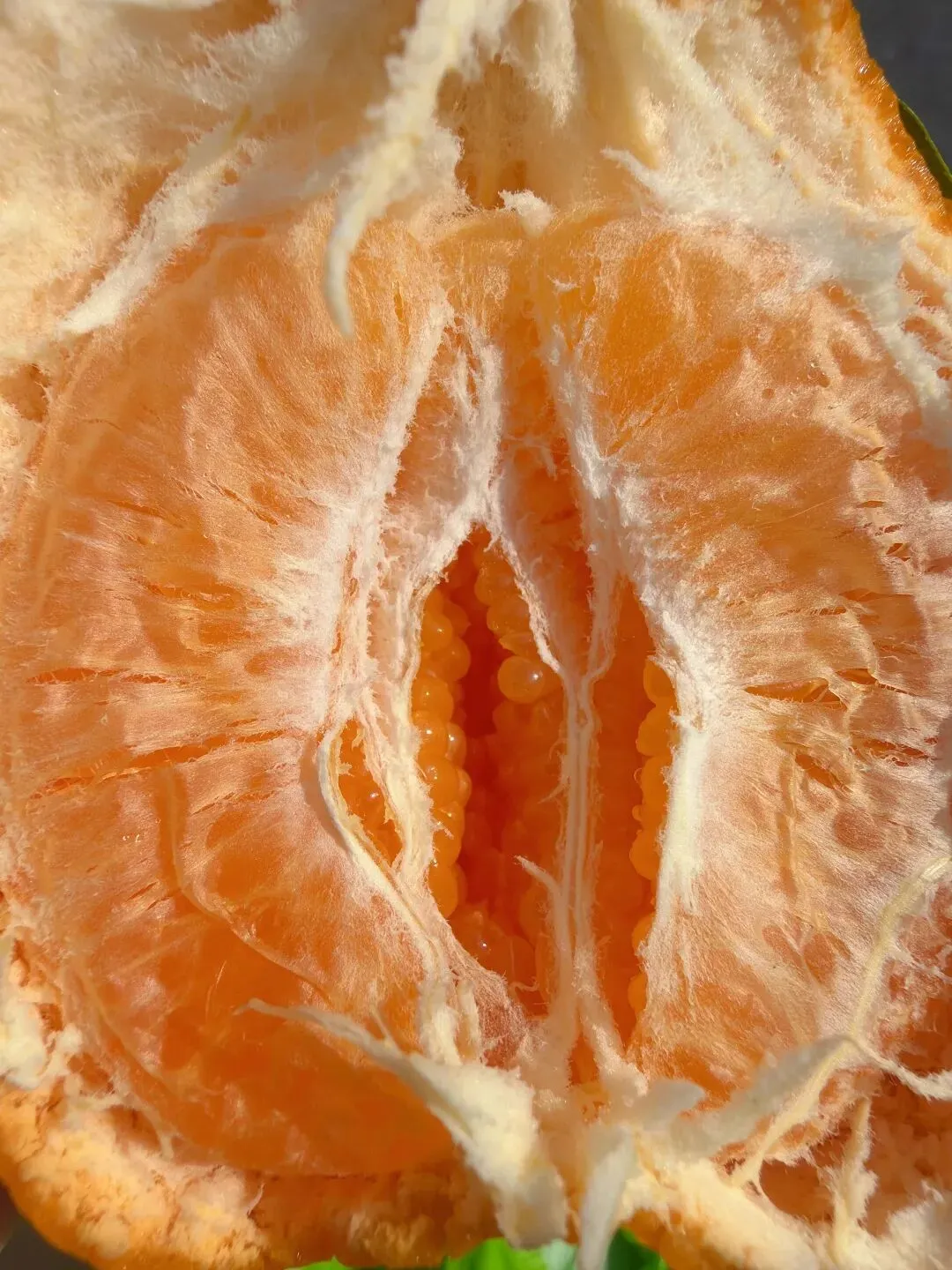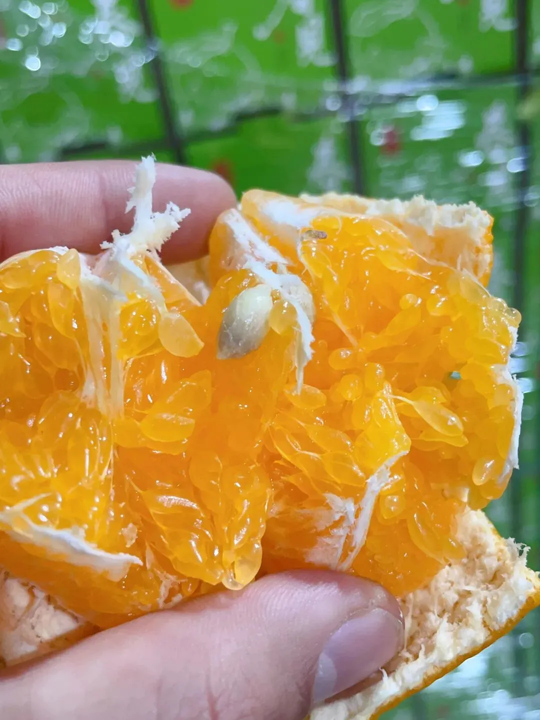那种甜,是收敛的、不张扬的。 它不会第一口就猛地冲上舌尖, 而是在齿间轻轻化开, 像山泉水一样,清冽甘醇, 咽下去后喉咙润润的, 没有那种科技甜带来的干渴感。 市面上很多耙耙柑, 为了赶早市、抢高价, 果子还青着就摘下泡糖。 那样的甜,浮在表面, 吃几瓣就腻, 还烧嗓子。