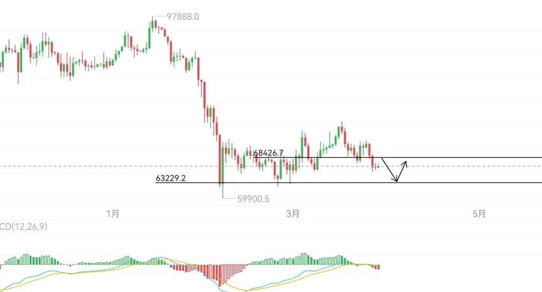 个人来看还是围绕右侧高空思路面对,大饼压力67500,支撑65500,给到测压67200-500区域即可安排空单进场,步步为营看空。
