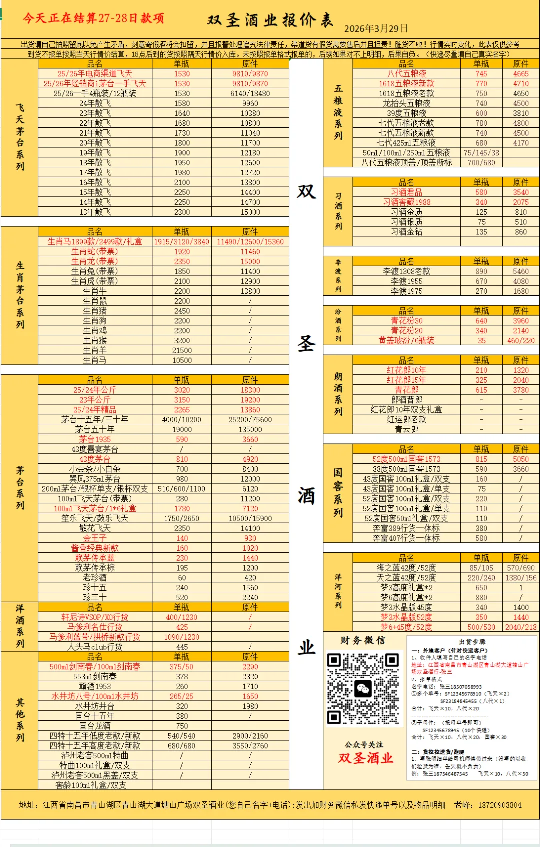 即日起,寄存超过15天的,出货时茅台+5、五粮液+2、飞天原件+15、八代原件+10、国窖+3.需要寄存的直接跟财务说明即可。