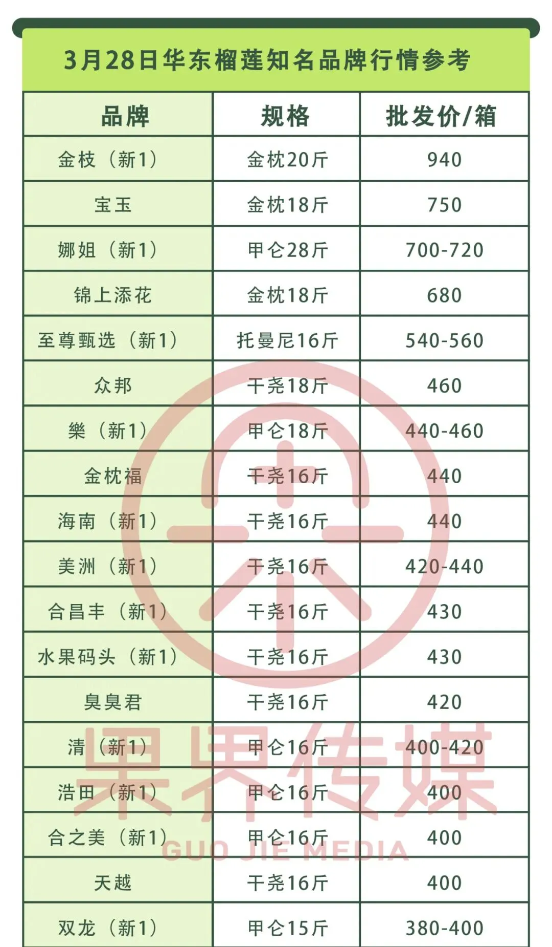 >3月27日果界传媒华东一级市场每日水果行情