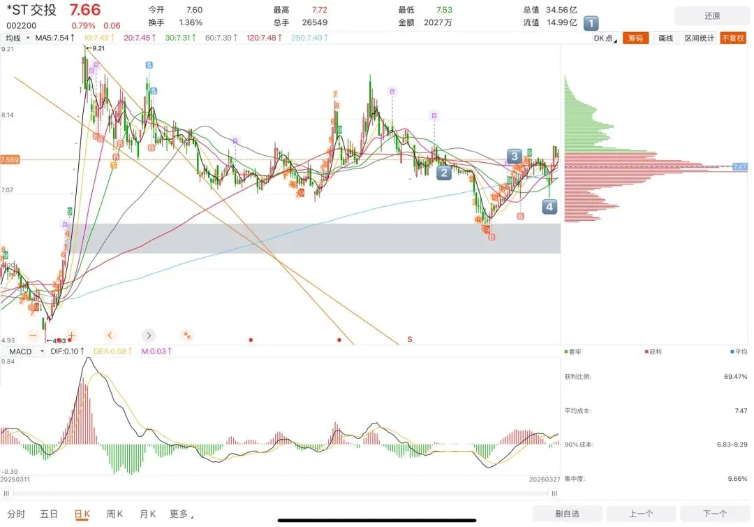 3️⃣这个点位大家也看到了,到了前期横盘点位就会被抛售走横盘,正常这里就应该打回成本立马走,因为我们要做的就是吃回浮亏,而不是吃肉,所以自救仓不要恋战,我之前也会有碰成本不走再次被套的案例,比如之前通葡自救就是,打回来不走,结果反转后跌了更多,交投我为什么这次没走!因为首先它市值够低,其次这周末就年报摘帽了,所以我想拿到摘帽申请后,这样不留遗憾,当摘帽标的来做,下周看市场态度