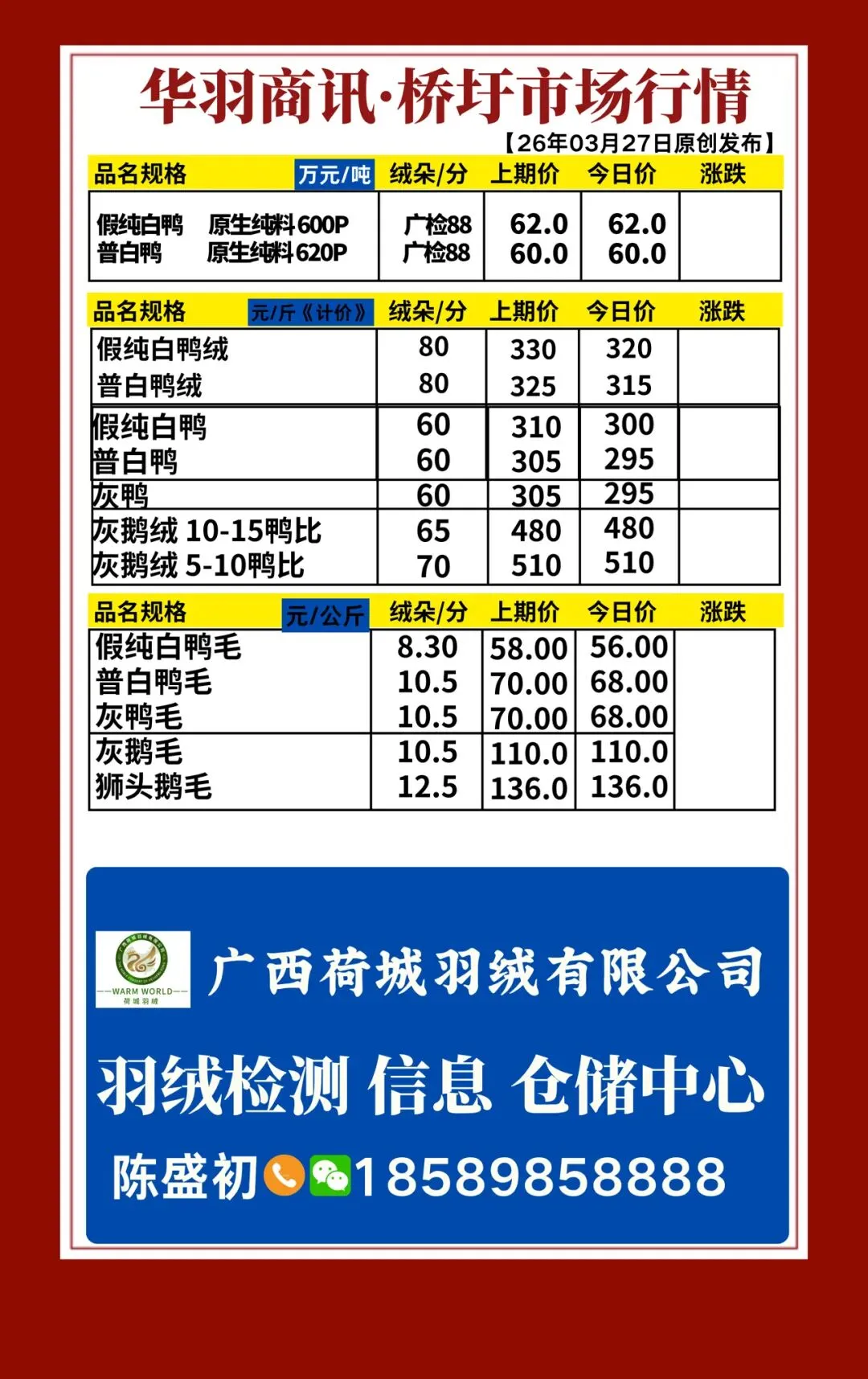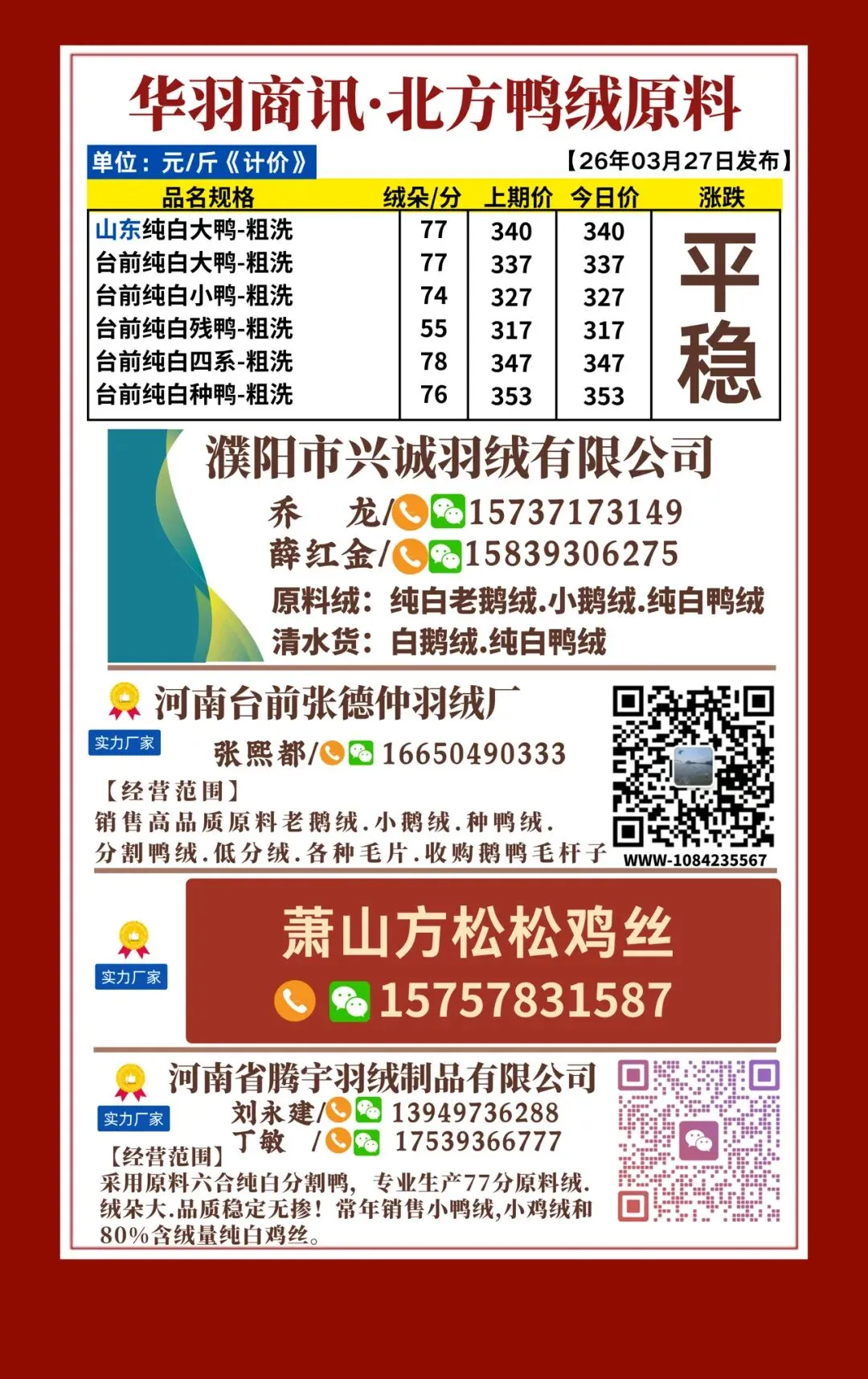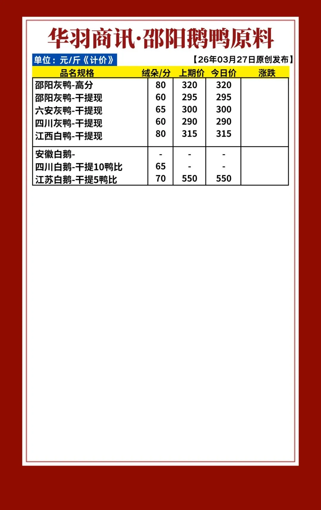 >363期 | 华羽商讯·今日原料羽绒行情【20260327发布】