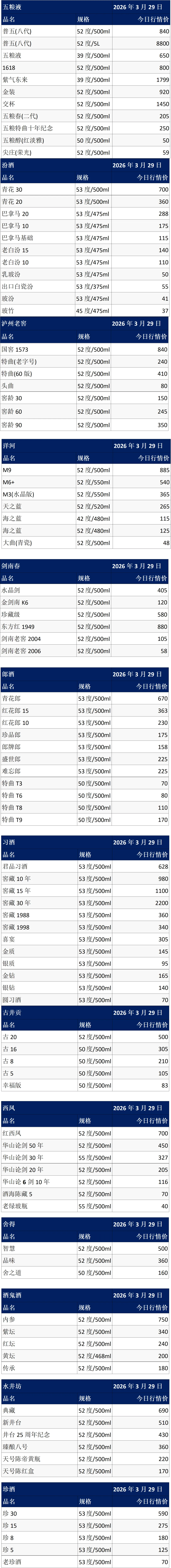 【茅粉行情】3月29日各大名酒批发行情参考价......