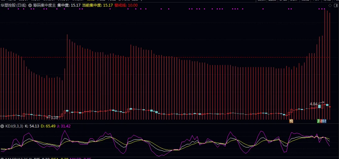 📌 信号识别指南:主图显示筹码集中度数值,当数值 < 10 且持续变小时,就是主力吸筹尾声信号!此时介入,大概率抓住大行情启动时机