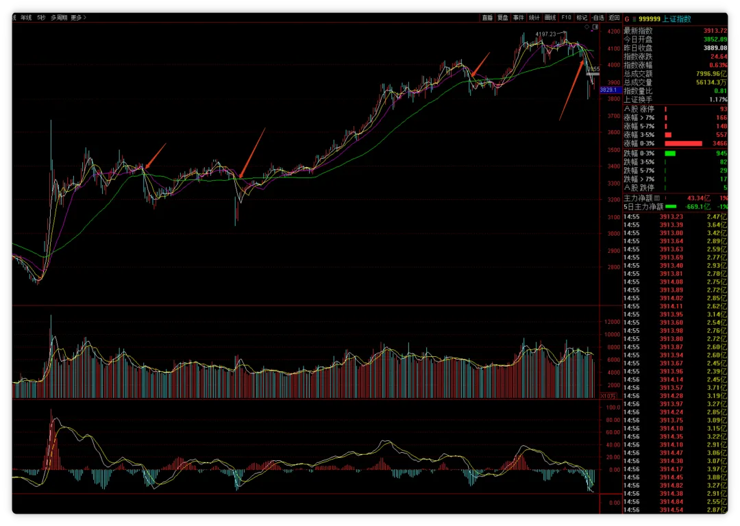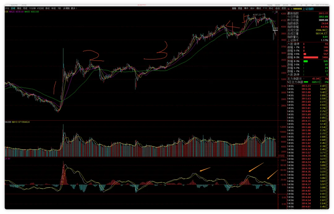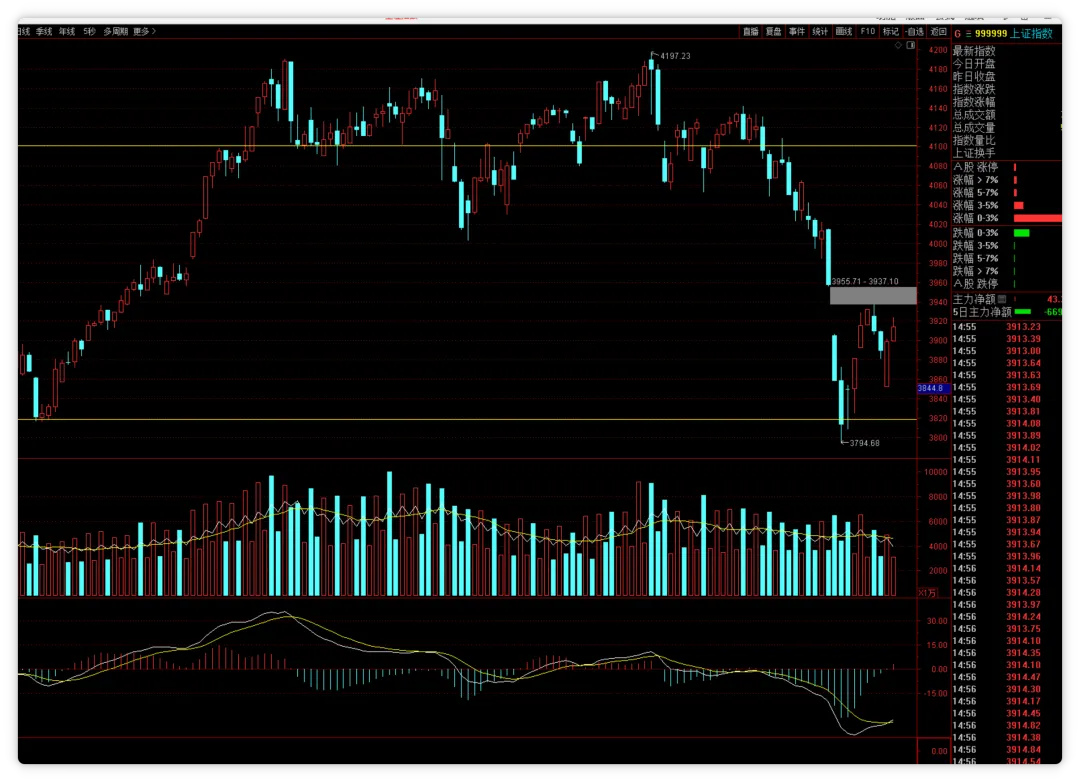 3、日线级别的均线向下发散了,且很多板块已经出现超跌的状态,这个位置出现大幅向上和向下的概率都不大,大概率是震荡为主,空间大概率是在3820点-4100点区间,时间可能需要2个月左右来消化这中间的套牢盘再来启动新的行情。