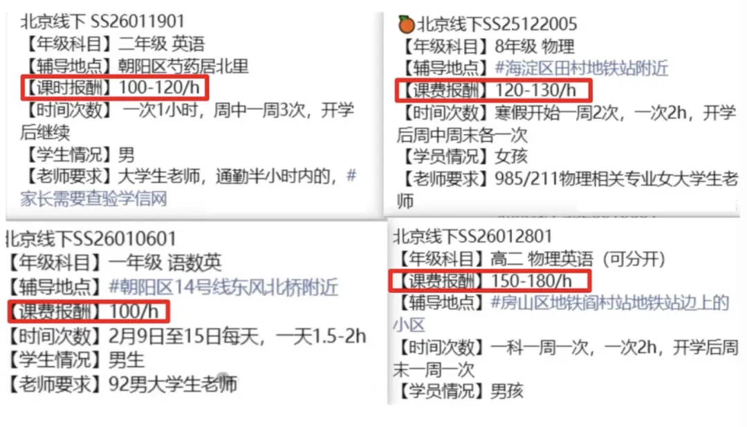 标注清北/985的单子,课时费也只有150-200块…