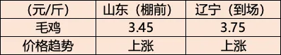 毛鸡报价:上涨。山东毛鸡涨5分/斤,实际收购有暗加。