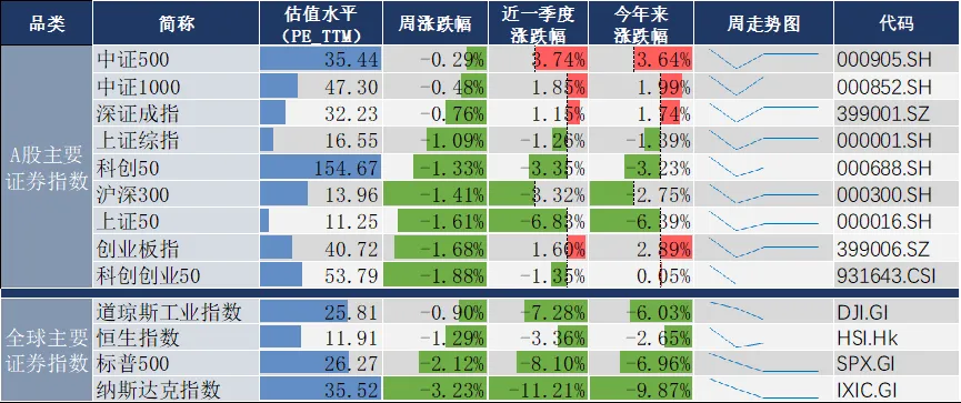 本周,上证指数累计跌1.1%,深证成指跌0.76%,创业板指跌1.68%。