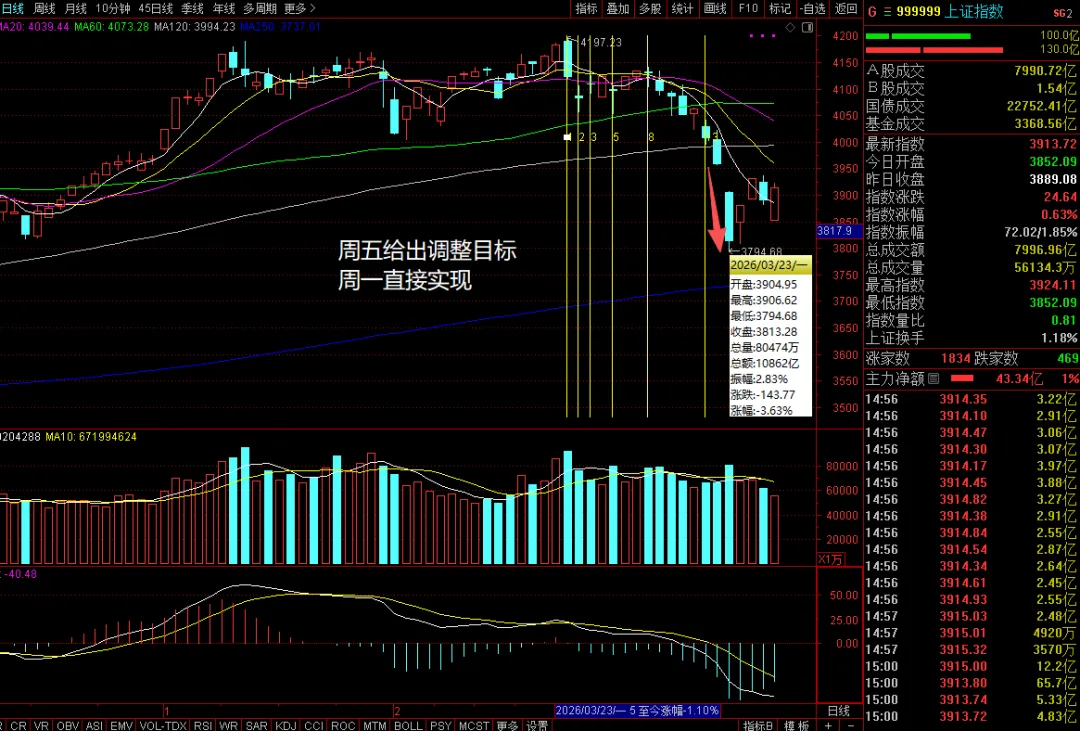周四调整,周五低开调整在3852点,所以每一步都是提前预测好的,画线派,市场反复验证!