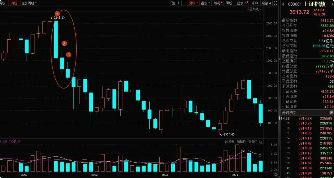 2001年,连续4个月下跌,反弹一个月后,继续下跌。