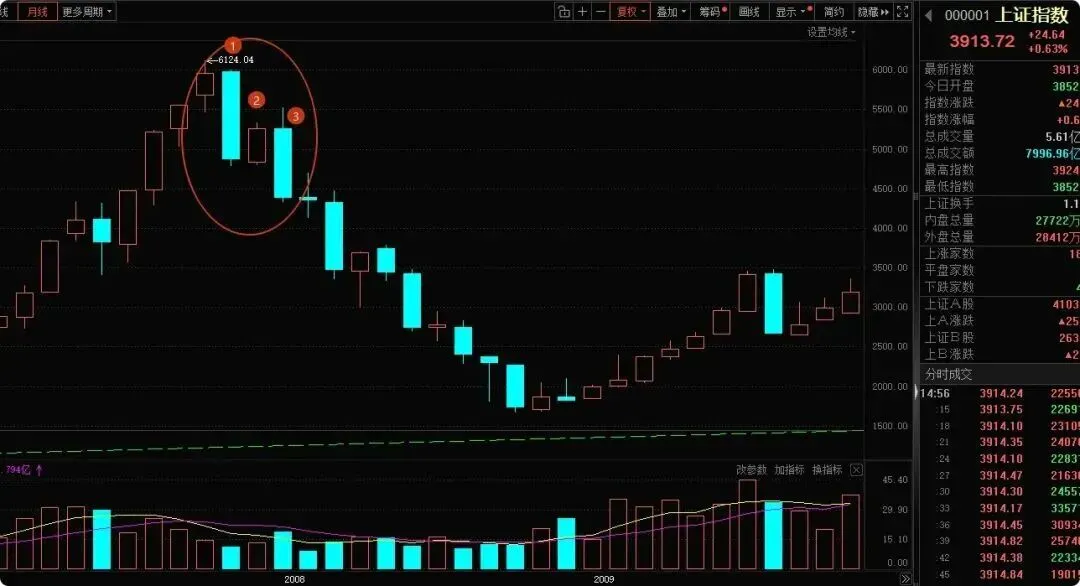 2007:第1个月底大阴线之后,指数大幅反弹8%,这个反弹很具有诱惑性,非常像牛市中的“倒车接人”,记得骗了很多人跑步进场。即使2008年初的寒冬,南方也是大雪纷飞,但是阻挡不了股民的热情。