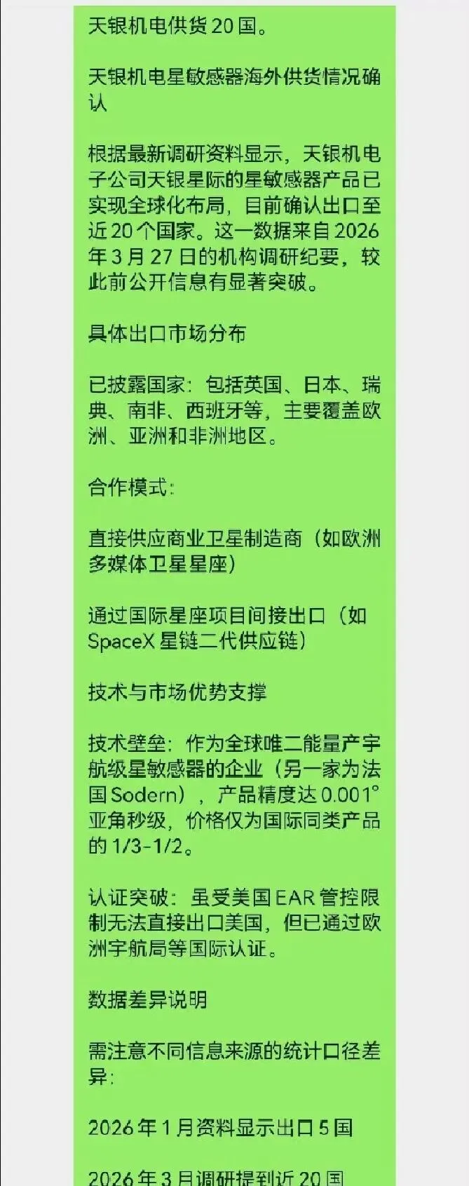 天银机电子公司天银星际为全球仅有的两家宇航级星敏感器量产企业之一,深度绑定清华技术产业化,是光学导航系统核心姿态测量硬件供应商;国内商业卫星市占率80%+,微小卫星领域近乎全覆盖,产品已出口近20国,认证壁垒高、客户粘性极强。
