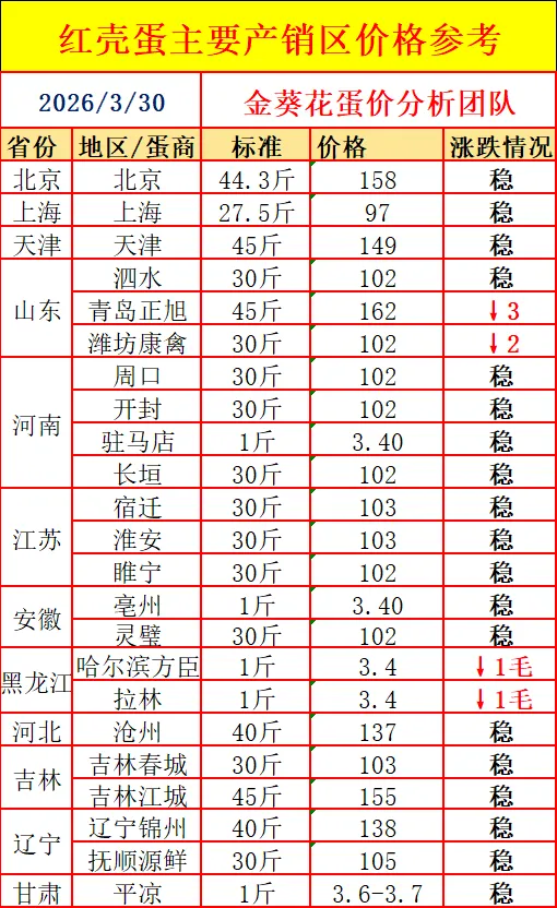 【行情】2026年3月30日鸡蛋、猪、牛、羊价仅供参考
