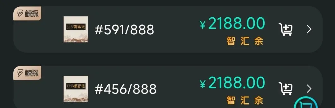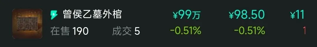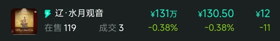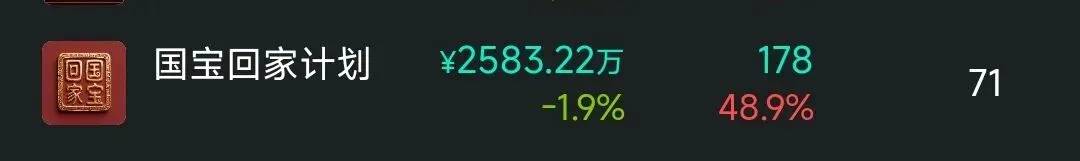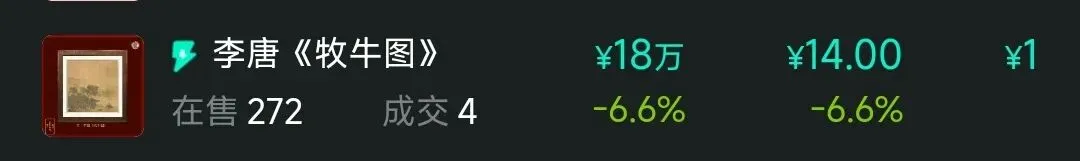 12.国宝回家计划,两极分化严重,50元级别以下藏品大概20种,局部形成价格坍塌,资金集中在新藏品与有先购预期藏品中,近期赚钱效应大幅减弱,熊市影响下砸盘明显。