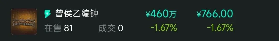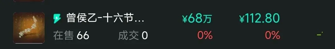 14.随州市博物馆,50元级别以下藏品大概100种,多祈福藏品,此处不具备参考意义,价格坍塌非常明显,布局机会较多,谨慎筛选。曾侯乙外棺跌至100以下,编钟跌至700元级别,十六节龙凤玉挂饰开始向100元探底。