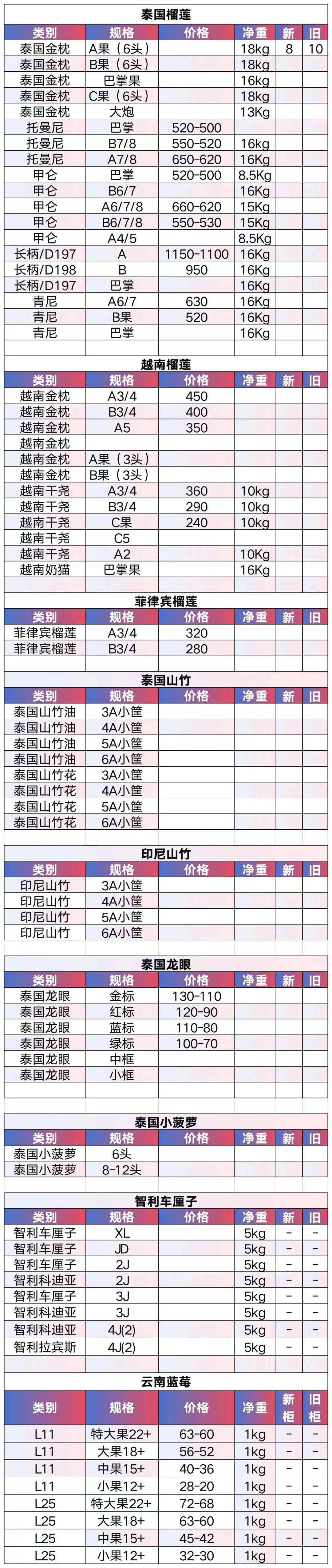 --泰国货这段时间托曼尼和甲仑陆续上市目前货物增多。预计4月后-6月东部金枕头大产季来临。