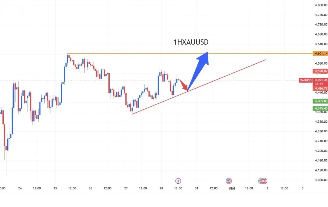上周K线收出长下影十字星,具明显止跌反弹迹象,多空力量重回平衡。本周为数据与假期交错周,非农数据、节日因素将令行情节奏更为波动,但亦带来布局机会。周一开盘重点关注多头延续,周五尾盘强势拉升打破短线压力,日线翻阳属止跌信号。支撑位4420、4460,压制位4555,多空分水线4460。