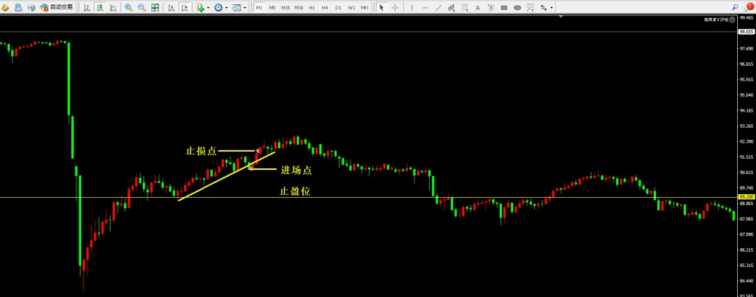 ③原油1分出现形态破位,91附近做空,止损92,目标89附近,亏损1美元。